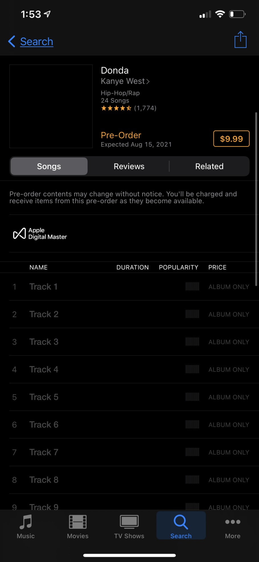 Kanye Releases Donda On Apple and Spotify Streaming Services. However as of Saturday evening iTunes is now showing Donda with a release date of Aug. The album which has 26 songs hit Apple Music and Spotify Sunday AM.